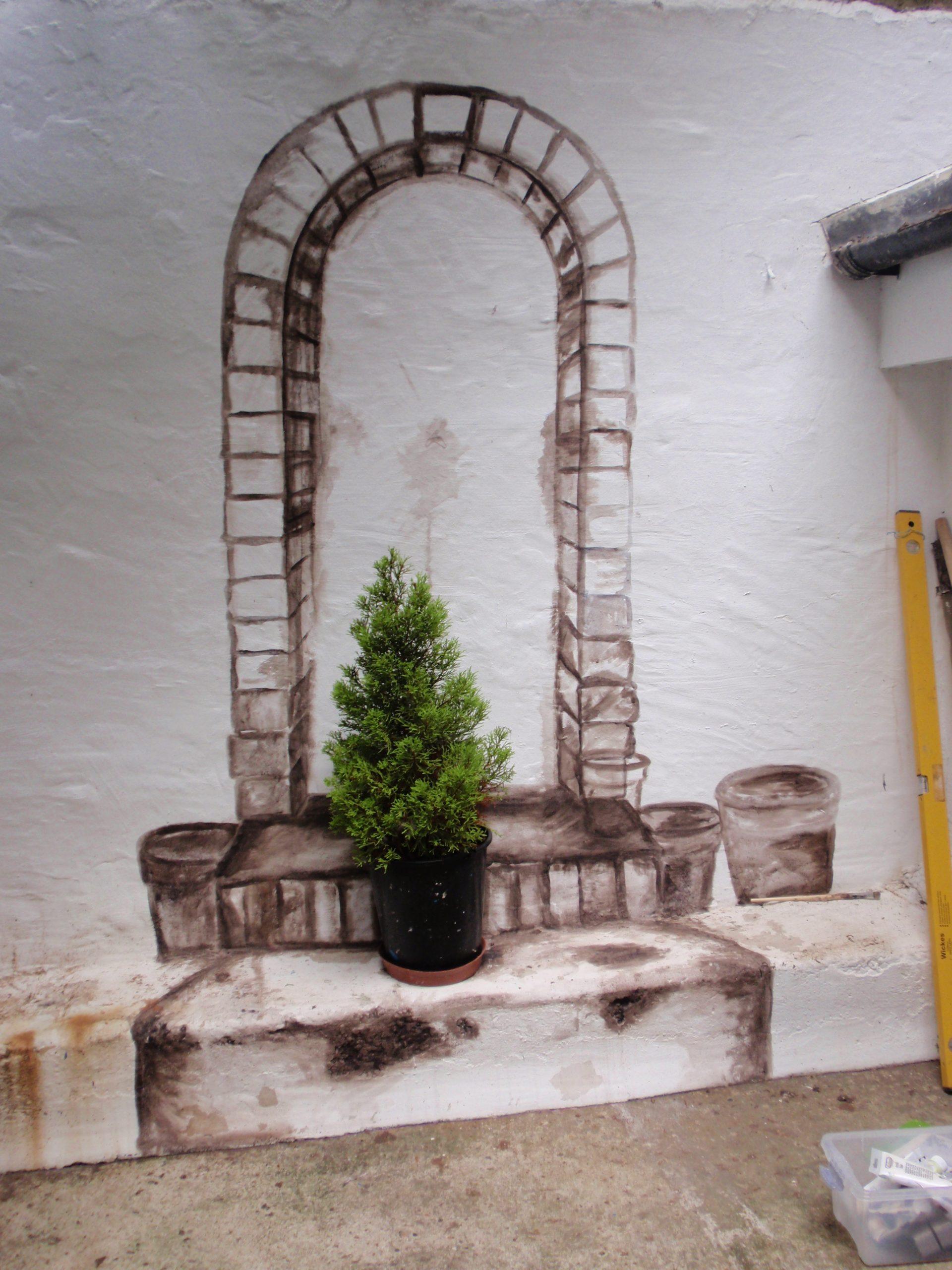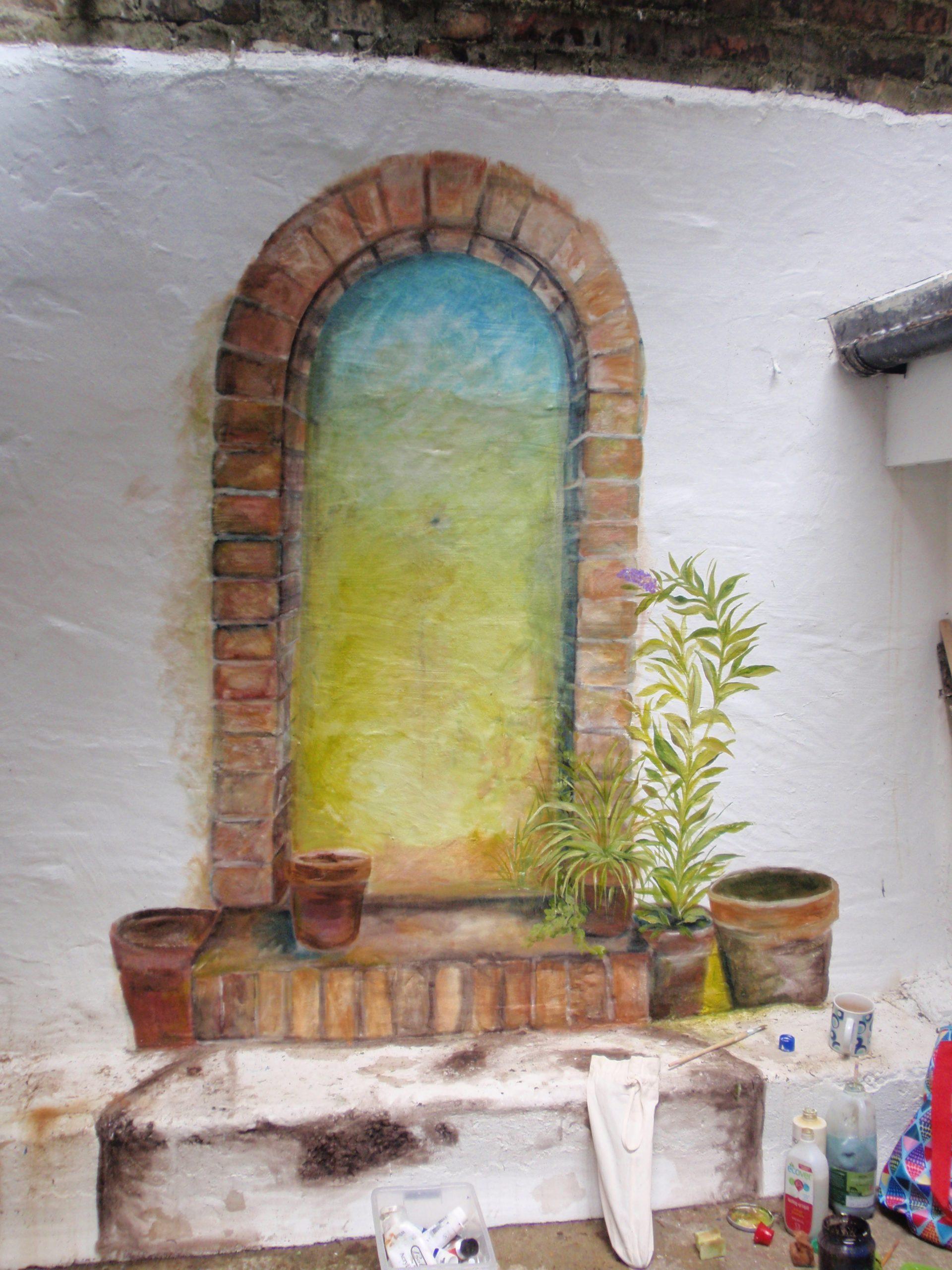 l have been asked to transform a rather dingy courtyard in to a more cheerful area by painting a mural on the walls.
